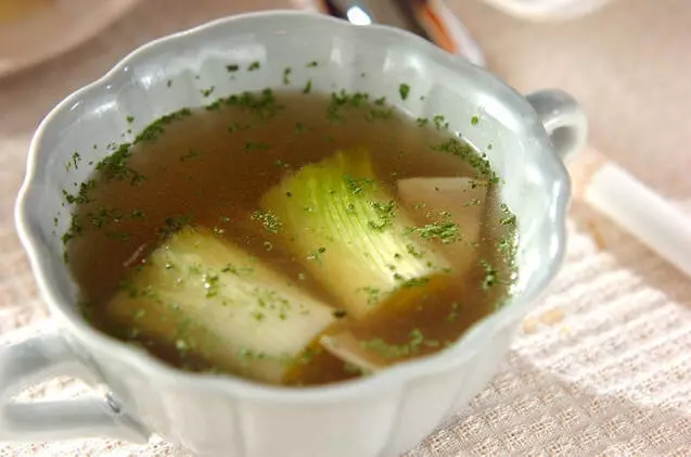 オリーブオイルでじっくり炒めたネギの甘みがコンソメスープに溶けだして、体中に染み渡る優しい味のスープが完成します。