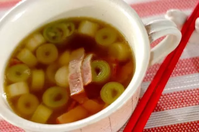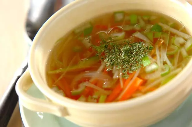 ネギの切り方を千切りにすることでシャキシャキした食感が楽しめます。残り野菜も一緒に入れれば食べ応えのあるスープになります。