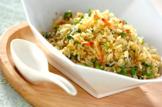 たっぷりのネギとジャコと桜エビが香ばしいシンプルチャーハン。カルシウムが摂れてお子さんのお昼ご飯やお弁当に◎。