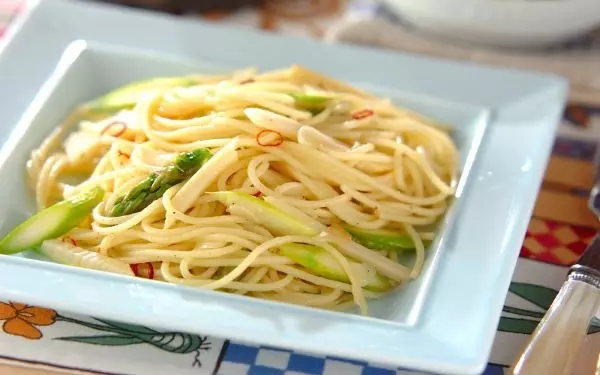 素材の風味が引き立つように、オリーブ油で炒めてシンプルに仕上げます。タケノコのコリコリ食感や香りを堪能できるパスタです。グリーンアスパラの代わりに、菜の花や春キャベツを入れるのもアリ。