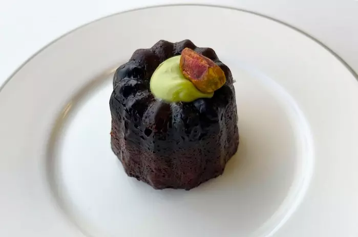 たまらないのは、もっちりした濃いショコラ生地に、ピスタチオを凝縮した感じの濃厚クリームをトッピングしたこれでもか!の濃厚さ。そしてその上にはカリッと香ばしいピスタチオが乗っています。