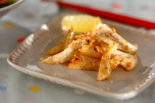歯ごたえがおいしい鶏軟骨をスパイシーなカレー風味で揚げました。揚げたてあつあつにレモンをぎゅっとしぼって召し上がれ。スパイシーな味付けがあとを引きます。大人だけでなく子どもも大事な満足な一品です。