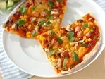 3、生地にピザソースを塗り、好みの具をのせ、ピザ用チーズを全体にちりばめ、250℃に予熱したオーブンに入れ、8~10分焼き上げる。
