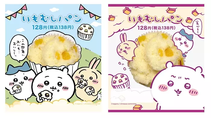 作品にも登場する「いもむしパン」。四角いおいもの乗った、ふかふかの蒸しパンです。パッケージデザインは全2種類。※沖縄県は価格・仕様が異なります。