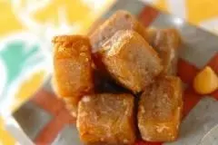 茹でた玉こんにゃくを串に差し、甘いみたらしだれをかけてお団子風に。玉こんにゃくは茹でることで、こんにゃく独特の臭みが抜けます。ダイエット中のおやつにも最適ですよ。