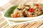 トンカツ用の豚ロースが余ったら、焼き飯に活用するのもアリです。2人分で1枚あれば十分満足できますよ。隠し味のバルサミコ酢がアクセント。豊かな香りとコクで、いつもの焼き飯とは違う一品に仕上がります。