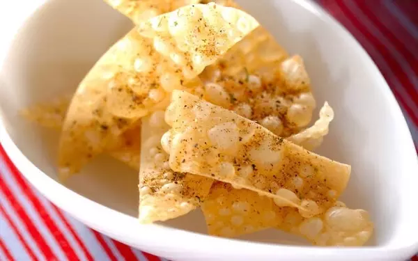 餃子の皮を揚げて塩コショウをかけるシンプルなレシピです。簡単ですぐにできるので、余った皮の消費にはピッタリ! サラダやチャーハンのトッピングに使ってもいいですね。