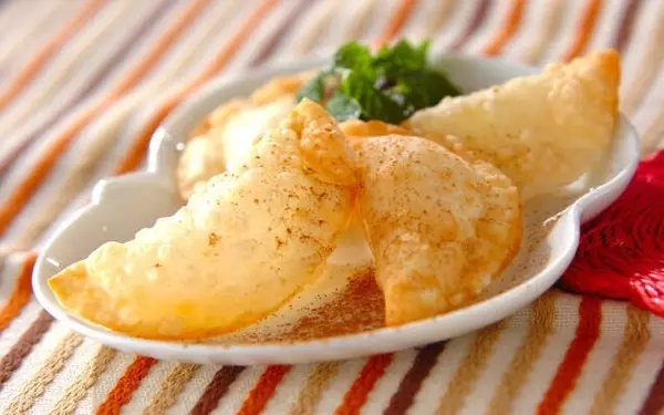 餃子の皮にリンゴジャムを包んで揚げるだけの、簡単アップルパイ。仕上げにかけるシナモンパウダーがポイントです。ふちはフォークでしっかり押さえて、ジャムが出てしまわないように注意しましょう。