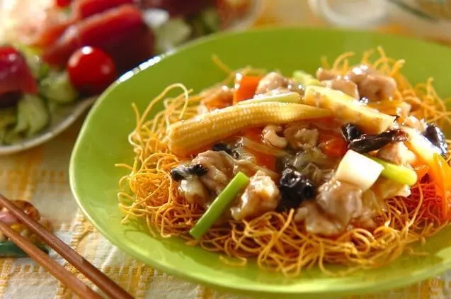 市販のもち米おこげを使います。おこげがサクサクしているできたてが一番おいしいです!野菜たっぷりで本格的な味わいをご家庭でも◎