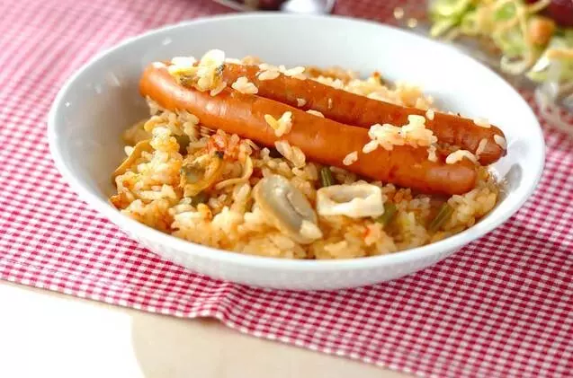 アメリカケイジャン料理の代表ジャンバラヤ。炊飯器で簡単に作りましょう。シーフードミックスとソーセージのダイナミックの組み合わせはお子さんと一緒に週末のランチに良いですね。