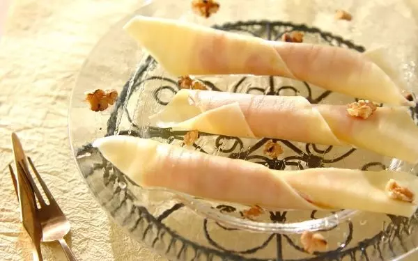 ラザニア用パスタを使った変わり種のスイーツです。角切りのマスカルポーネと果物をのせて、くるりと巻きます。もっちりしたパスタとマスカルポーネの酸味やまろやかさが絶妙。スイーツとしてだけでなく、ワインのおともやオードブルにもどうぞ。