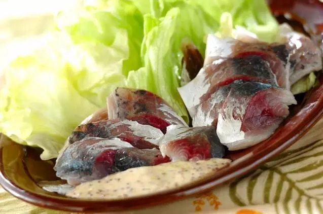 サッパリとしたアジの酢漬けに、マスタードマヨを合わせたサラダです。白ワインにも合う1品です。酢漬けの際は、バットまたは密閉容器はアジがピッタリと収まる大きさのものを選ぶと良いです。