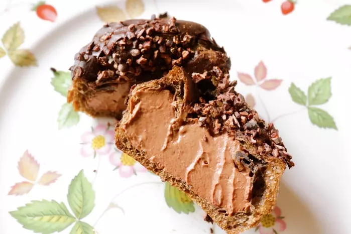 チョコレートのクリームをデコレーションのように絞り出した形が美しい…!見た目の高級感にうっとりです。こってり濃厚なチョコクリームは口当たりなめらか。チョコチップのサクサク感やパールのような小さいチョコレートのプチプチ感もあって楽しいです。
