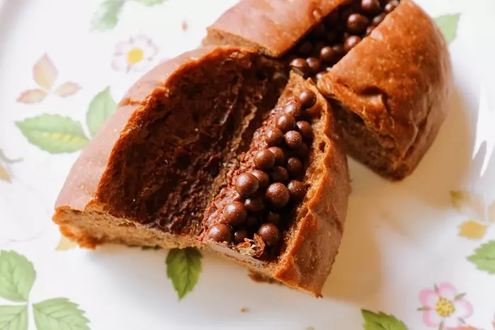 光沢感のあるパールショコラ。光の加減で艶々にもマットな色合いにも見えて、色んな角度から眺めていたい…(笑)。パールショコラがこぼれ落ちそうなほど詰まっています。パンの生地からチョコレートの香りがほのかにしました。食欲そそります~。