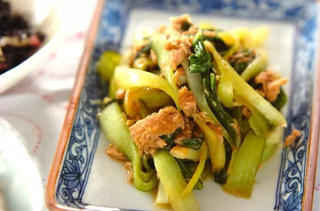 チンゲンサイとツナをポン酢しょうゆで炒めたスピードレシピ。千切りにしたショウガが味を引き締めます。お弁当にもオススメの一品です。