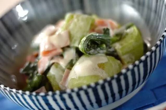 チンゲンサイとハムで作る10分で完成のスピードレシピ。シャキシャキのチンゲンサイに濃厚なクリームが絡まって美味。