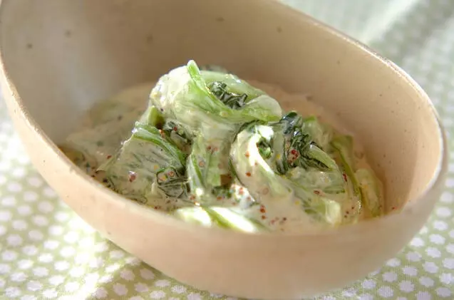 粒マスタードとマヨネーズ、ヨーグルトの酸味がさっぱりおいしい一品です。10分で完成のスピードレシピです。チンゲンサイの水気はしっかり絞りましょう。