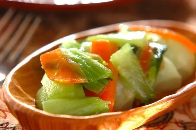 塩コショウでシンプルに味付けしたチンゲンサイのガーリック炒め。にんじんも入れて彩りよく仕上げましょう。ニンニクの香りが食欲をそそる一品です。