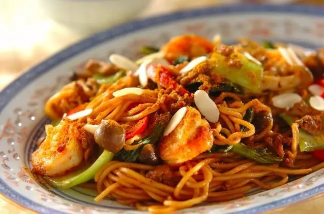 ・豚バラとチンゲン菜のピリ辛エスニック焼きそば