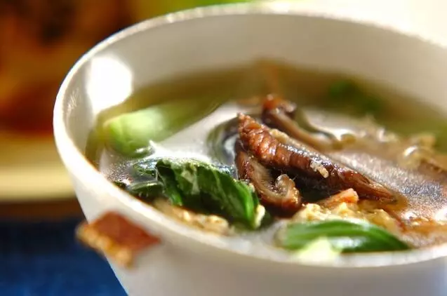 干しシイタケの戻し汁と小エビのだしが美味。ナンプラーで味付けするとたちまちエスニック味に。干しシイタケは前日から水に浸し、冷蔵庫に保管しておくと便利です。戻し汁がない場合は、鶏ガラスープの素で代用できます。