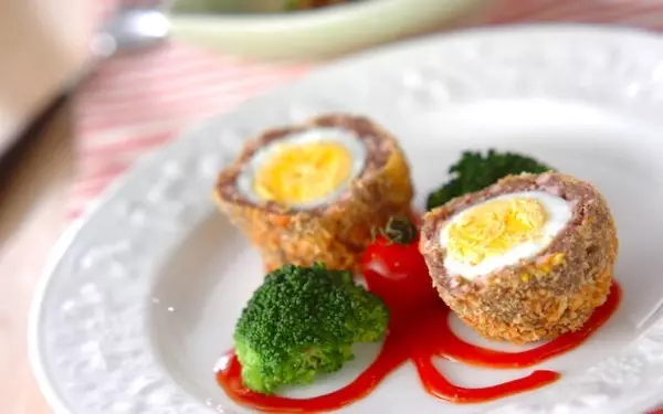 魚肉ソーセージ入りの合わせダネでゆで卵を包んで揚げる、ボリュームのあるおかずです。魚肉ソーセージの風味がお肉に加わり、ソースをつけなくても美味しく食べられます。冷めても味が落ちないので、お弁当にもピッタリです。