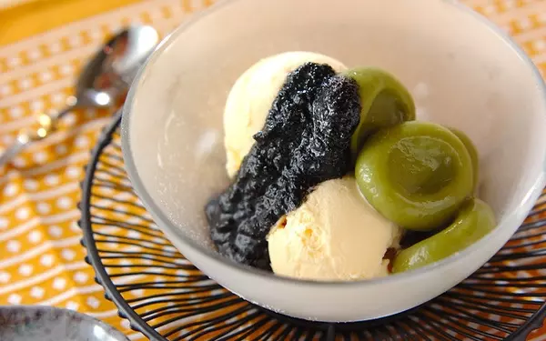 白玉を使ったひんやり洋風スイーツを食べたいときにぴったりなのがこちら。アイスクリームと相性の良いメープルシュガーを白玉粉に混ぜるのが美味しさの秘訣です。コクがあり、芳醇な香りのメープルシュガーの甘さが格別。アイスクリームのフレーバーはバニラがベターですよ。