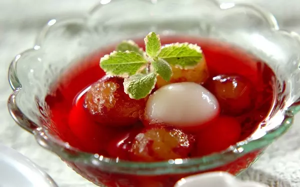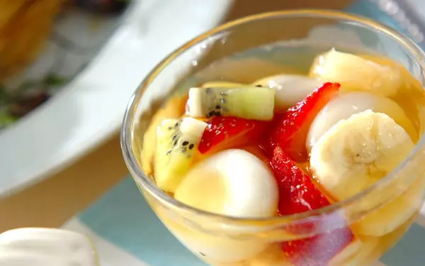 フレッシュフルーツの白玉の組み合わせは、さっぱりしていて食べやすいのが魅力。シロップはリンゴジュースで良いので、簡単に作れるのがうれしいですね。炭酸水を加えて爽やかに味わうのもアリ。フルーツは旬のものでアレンジできますよ。