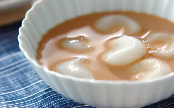 ココア入りの白玉生地で生チョコを包んだユニークなお団子です。ナッツの香り豊かなアーモンドシロップを加えたホットミルクに浮かべると、リラックスタイムにぴったりなデザートに。もっちりとろ~りの極上食感を味わいましょう。