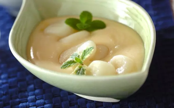 ポタージュ仕立てのカボチャスープに白玉を加えると、いつもと違う味わいに。白玉団子は別に茹で、冷水でしめておきましょう。クリーミーなスープと白玉の組み合わせは、意外なようで相性抜群。ハンバーグやエビフライなど洋食の献立に合わせみてはいかがでしょうか?