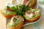 濃厚なアボカドクリームに生ハムを乗せたオシャレなオードブル。アボカドはヘタが膨らんでいるのが食べごろのサインです。イタリアンパセリをのせておしゃれに仕上げてください。