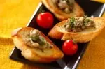 ピーナツクリームにみそを合わせた変わり種のブルスケッタ。ピーナツクリームの甘さとみその塩辛さのバランスが絶妙です。