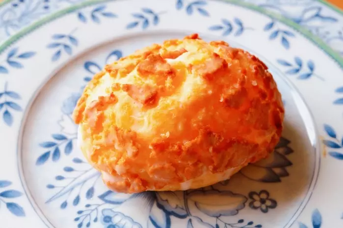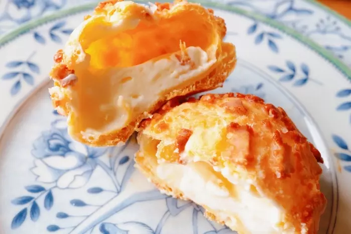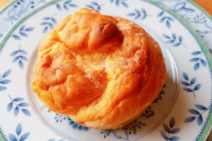 凸凹とした表面が、シュークリームと似ているような…。シュークリームのようなパンというのは、わかる気がしました…!表面がシューのように薄い皮のようになっています。食べてみると、デニッシュ生地にも似ているけど、ソフトな食感も!