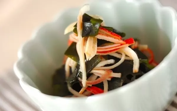海藻ミックスを水でもどし、大根おろしやポン酢しょう油と混ぜるだけの手軽な副菜です。火を使わずに作れるので、夏の夜メニューにぴったり。中華風にアレンジするなら、ラー油をたらすと良いですよ。
