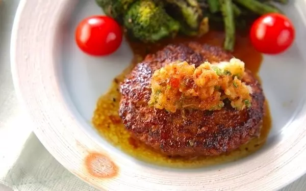 ハンバーグの肉ダネに豆腐を加えると、あっさりいただけますよ。味つけは大根おろしたっぷりの和風ダレです。木綿豆腐の水気が残っているとハンバーグが崩れやすいので、布巾に包んで水切りしてから混ぜてくださいね。