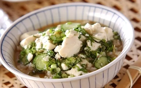 ごはんをさらさらと食べたい夏の夜は、宮崎の郷土料理の冷や汁がぴったりです。煮干しや白ゴマ、ピーナッツをすりつぶしてみそ汁に加えたら、キンキンに冷やしておくのが美味しさの秘訣。キュウリや大葉などの夏野菜と豆腐を加えてごはんにかければ、一杯で満足感を得られますよ。