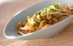 タラの旨味がたまらないヘルシーな一品です。モヤシのシャキシャキ食感も良いですね。ショウガなどの薬味たっぷりの中華蒸しは身体を温め血行を良くするので、エアコンで冷えた体にオススメです。