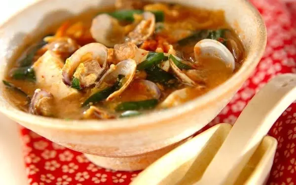 冷しゃぶにピリっと辛みのあるスープを合わせると、献立にメリハリがでます。こちらのレシピはアサリや豆腐などのタンパク質がたっぷり摂れるのが魅力。野菜たっぷりの冷しゃぶサラダの献立におすすめです。