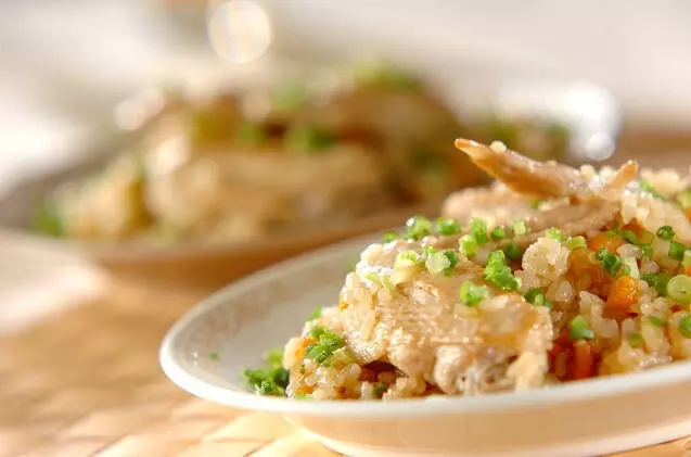 コラーゲンたっぷりの手羽先と、ヘルシーなコンニャクを使った炊飯器におまかせのピラフです!