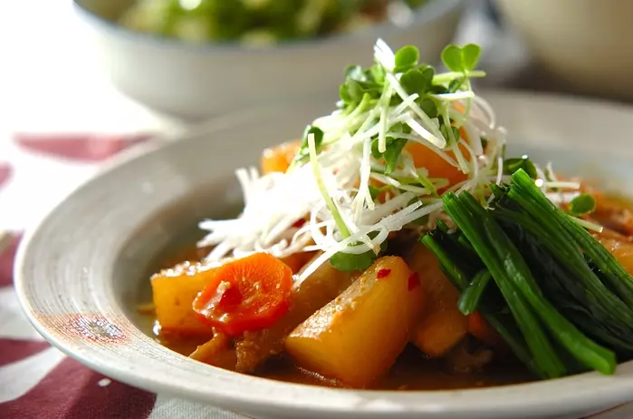 暑い日に食べたい香辛料が効いた手羽元と大根のカレースープです。最後に加えたバターが味に深みを出しています。