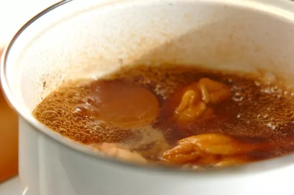 2、煮たったら落とし蓋をして中火にし、常に軽く煮たっている状態で20分以上煮込む。
