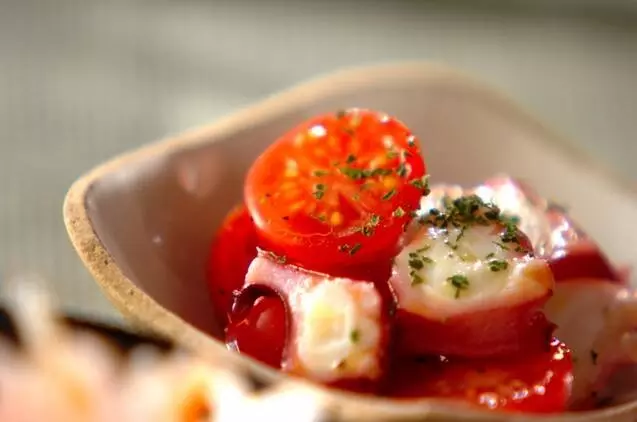 タコとミニトマトを使った、簡単マリネです。あともう1品ほしい時や、食欲のない日にもおすすめです。とにかくさっぱりとした味わいが人気ですよ。