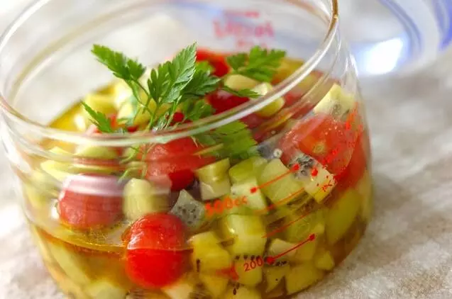 「オリーブオイル+白だし」の簡単マリネ液で、ドレッシングとしても!ミニトマトの大量消費にもおすすめです。サッパリとした味わいのマリネです。