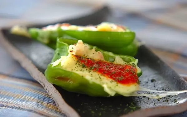 ピーマンを器にして、中にポテトサラダを詰めるアイデアレシピ。チーズをたっぷりかけてオーブンで焼き、ピザ風にしていただきます。ピーマンの苦みが気になる場合、事前に茹でておくと軽減できますよ。