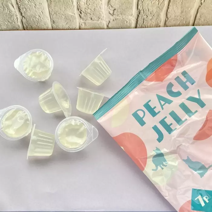 もも果汁を使用した1口サイズのピーチゼリー。暑い夏になるとあちこちから桃フレイバーのお菓子が発売されて、いろいろ食べたくなりますが、こちらもその一つ。冷蔵庫で冷やして食べると夏の1口おやつにピッタリですよ。