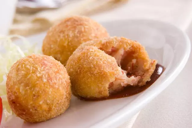 肉の旨味をダイレクトに味わえるコンビーフで作ったコロッケはさっぱりしたハイボールにピッタリ。コンビーフの量を多めにすると◎。