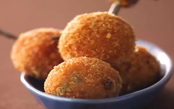丸めたピラフに衣をつけ、ライスコロッケにアレンジします。ピラフにしっかり味がついているので、調味料は不要。小さめに作ればおつまみに、大きく作れば主食や主菜になります。ピラフを炊くときはしっとり仕上げると丸めやすいですよ。