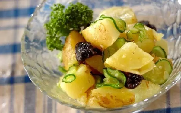 食物繊維たっぷりのプルーンを加えるポテトサラダです。プルーンにはビタミンやミネラルが豊富に含まれるので、美容や健康にうれしい効果が期待できます。また、マヨネーズは使わず、オリーブ油で仕上げるのでとってもヘルシー。ダイエット中の方や、健康が気になる方におすすめのサラダです。