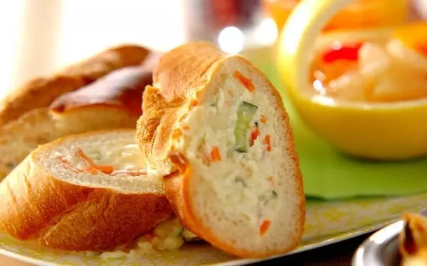 ポテトサラダをバゲットに詰めるサンドです。ポテトサラダはクリームチーズと混ぜることで、とってもクリーミーになり、バゲットとベストマッチ。冷蔵庫で冷やしてから切ると、断面がキレイに仕上がりますよ。持ち寄りパーティーにも良さそうですね。