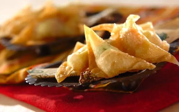 サモサはインド料理のひとつで、ジャガイモなどをスパイスで味つけし、小麦粉で作った生地に包んで揚げます。その具材としてポテトサラダはピッタリなんです。カレー粉で味を整え、シューマイの皮で包んで揚げれば出来上がり。サクサクでスパイシーな味わいは、ビールによく合いますよ。
