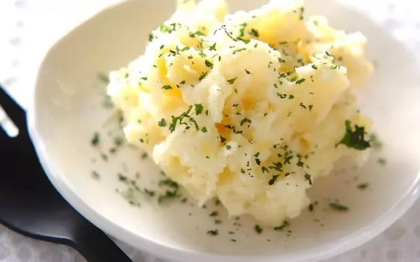 一番シンプルなジャガイモだけのポテトサラダです。ジャガイモは水から茹で、しっかり粉ふき状にして熱いうちに下味をつけましょう。コツをおさえるだけで、ジャガイモだけでもとっても美味しいポテトサラダに仕上がります。ドライパセリを振れば、彩りも良いですね。